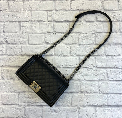 Chanel Black Caviar Quilted Leather Medium Boy Bag