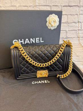 Chanel Medium Boy Bag; Black with Brushed Gold Hardware