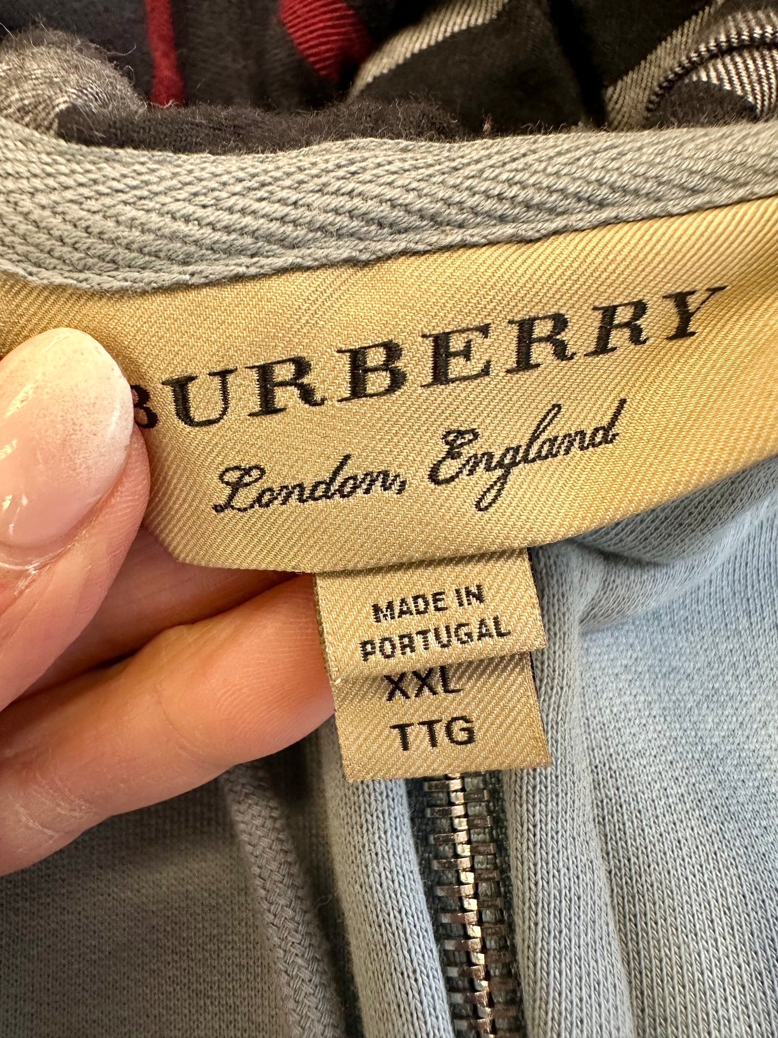 Burberry Clarendon Zip Up Check Hoodie Light Blue Sz XXL