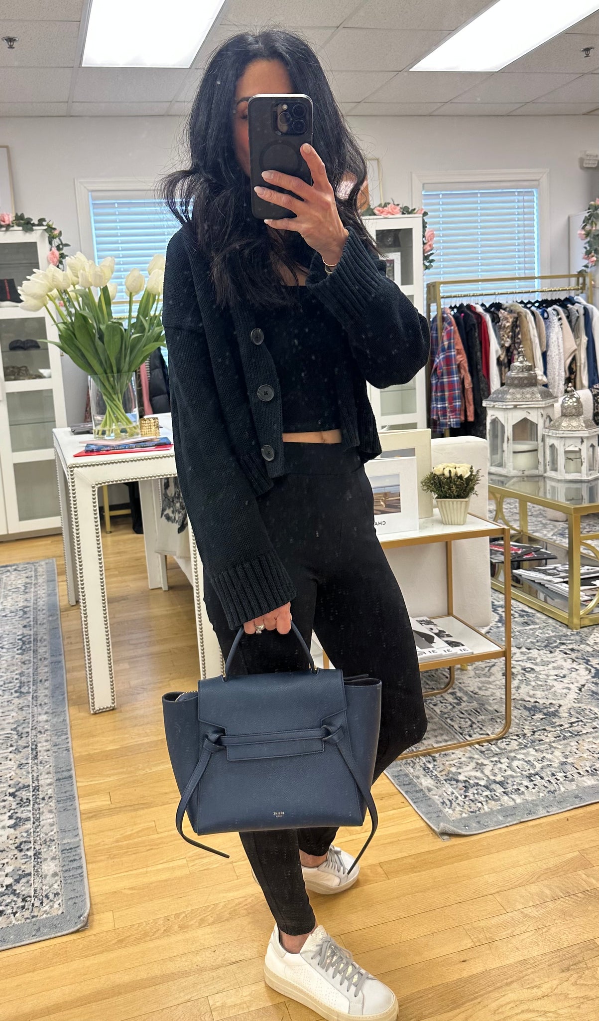 9.5” L x 7.5” H x 5”W, 3.5 handle drop, 21” strap drop.