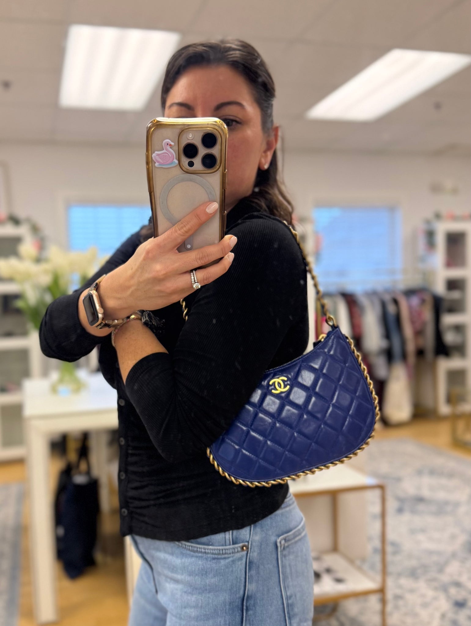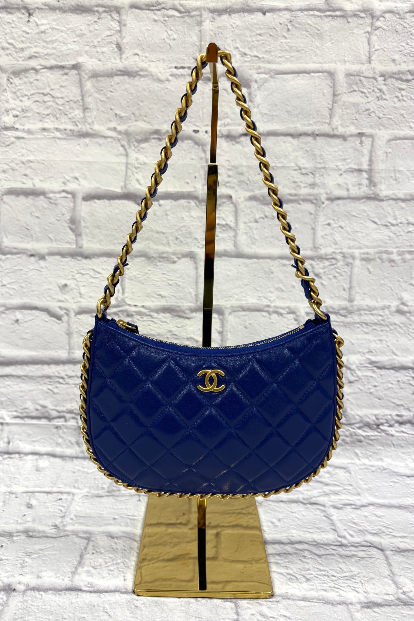 Chanel 2023 Blue Calfskin Chain Around Hobo
