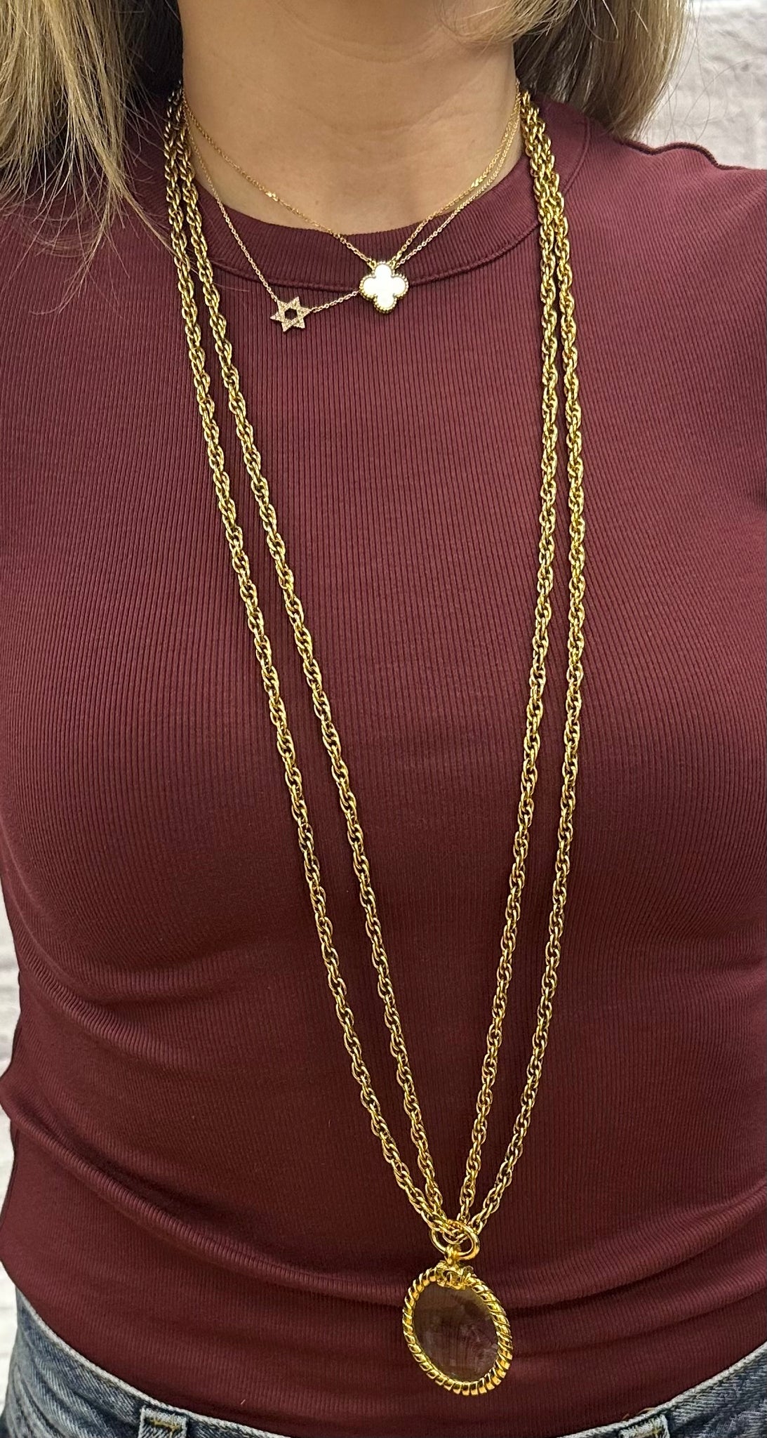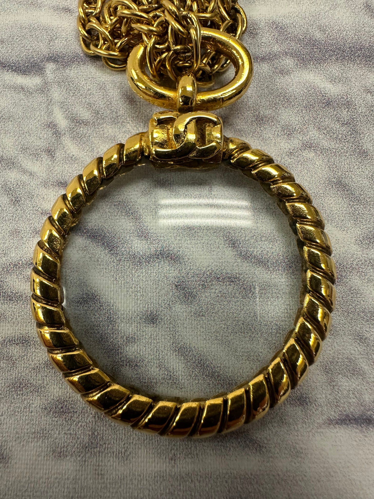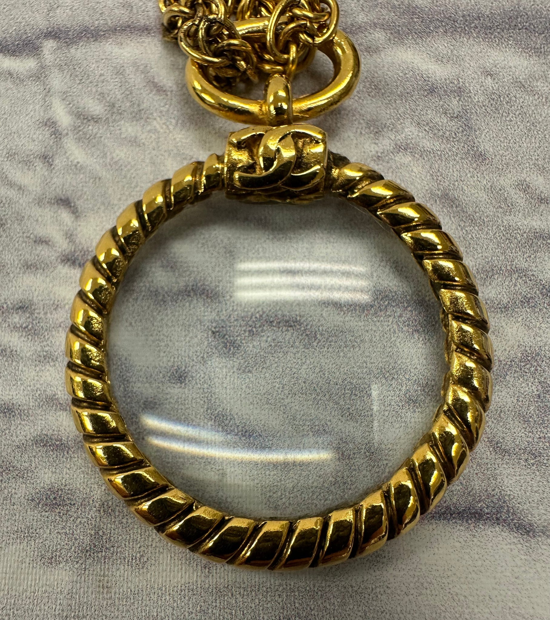 Chanel Long Gold Magnifying Glass Medallion Necklace