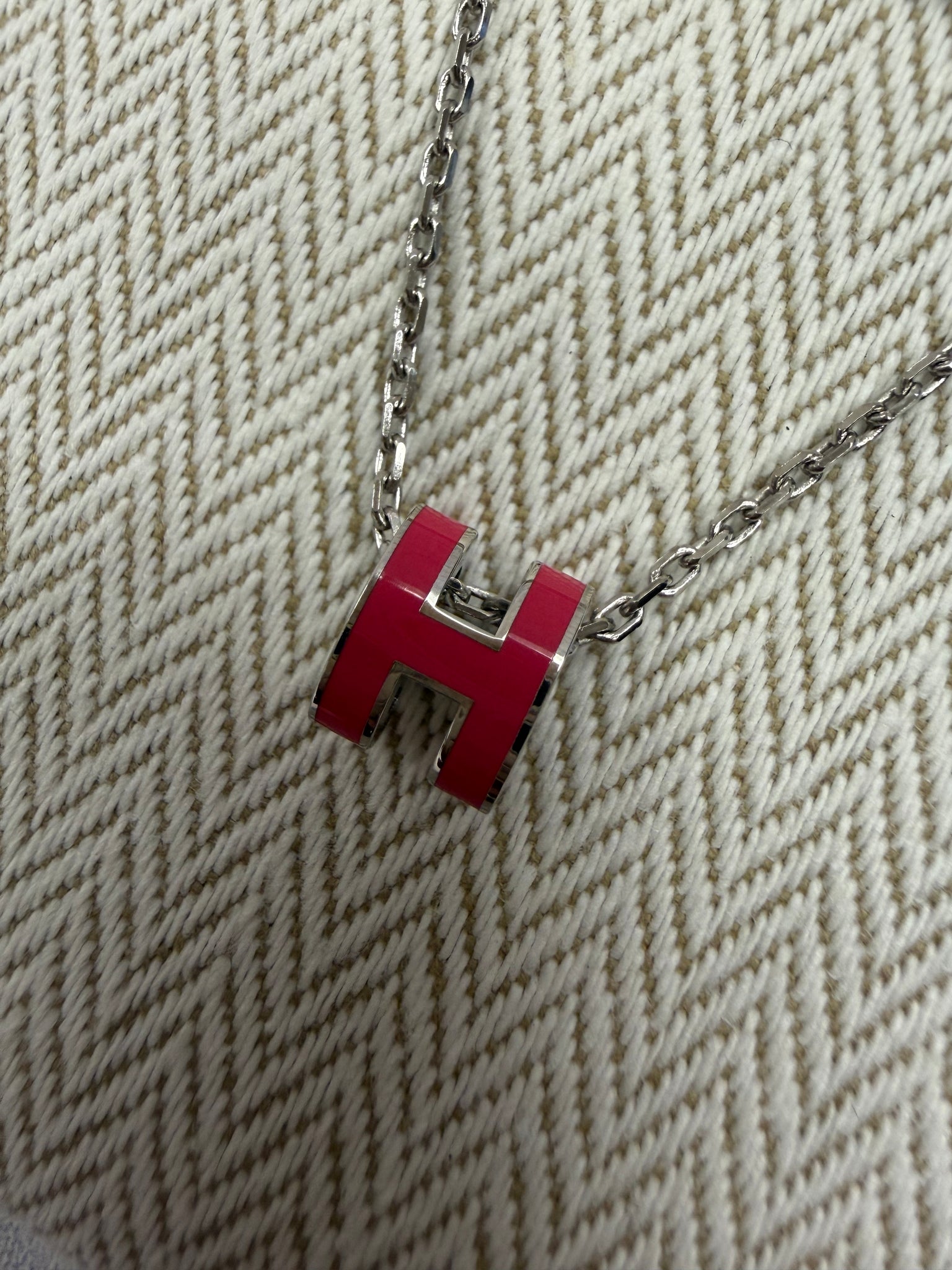 Hermes H Pop Necklace- Silver and Pink, NEW