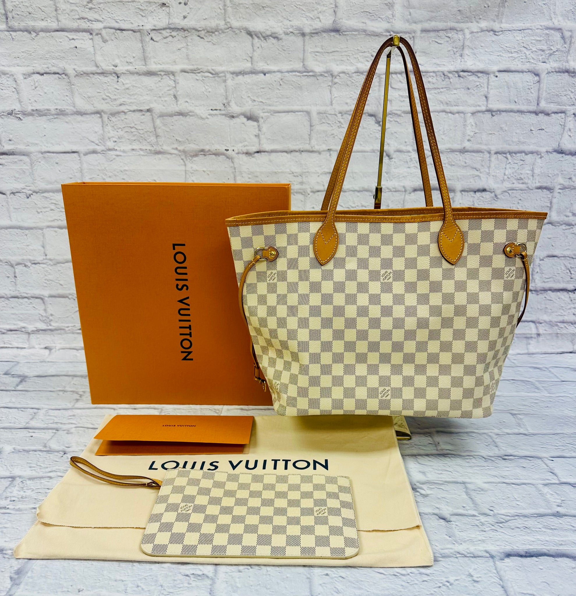 Louis Vuitton Damier Azur Neverfull MM, excellent condition. Clean exterior and interior. Comes with pouch, original box and dust bag.