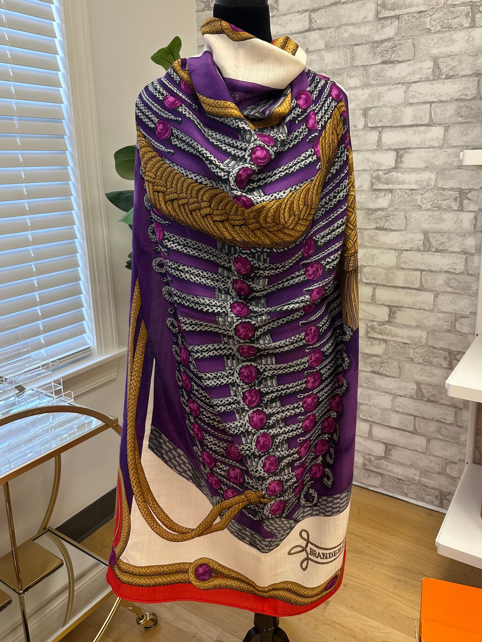 Hermès Brandebourgs Fleuris double face silk twill scarf, designed by Cathy Latham and Jeff Fisher in 2023.