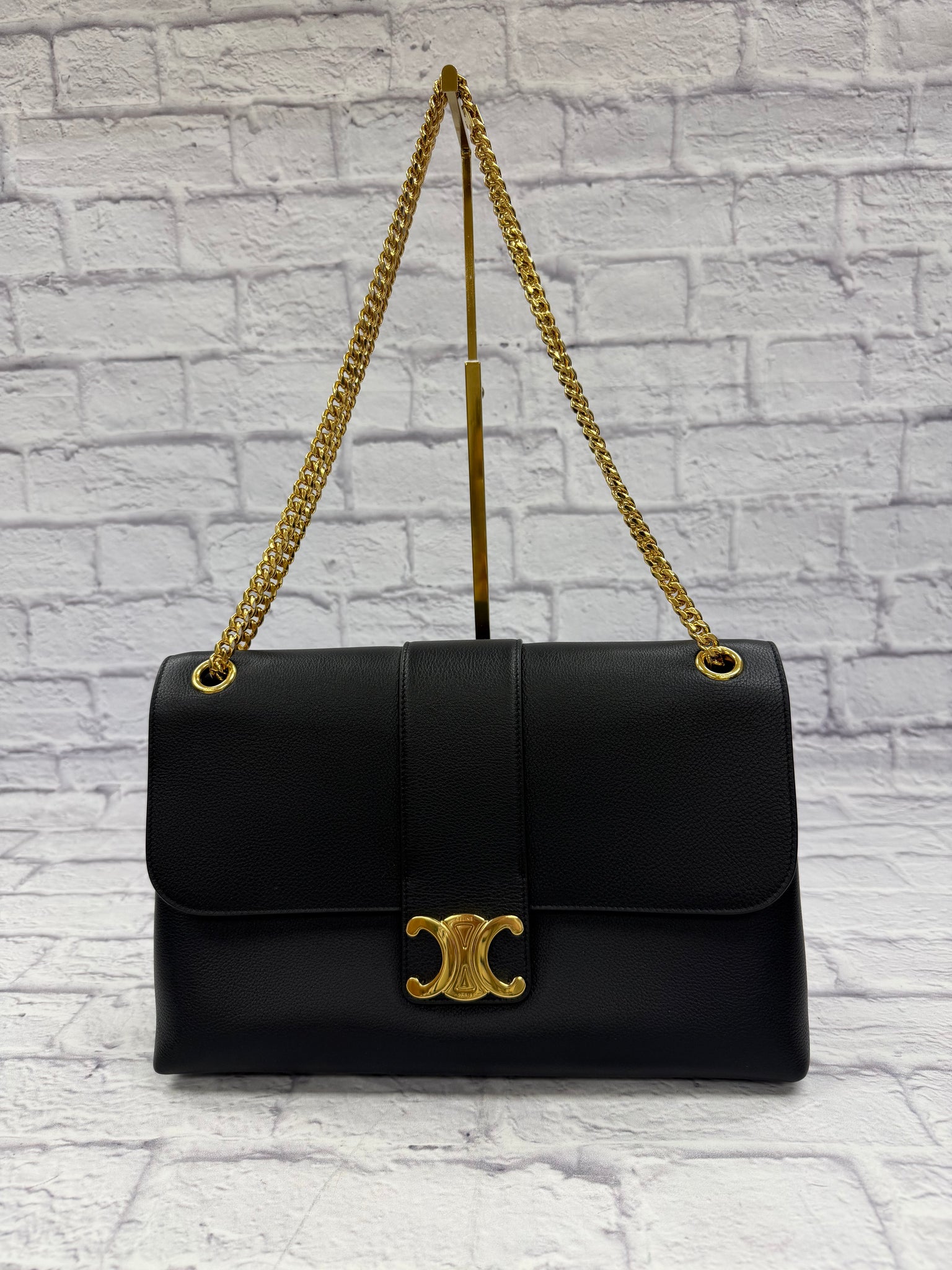 Celine Black Large Victoire Leather Shoulder Bag, NEW