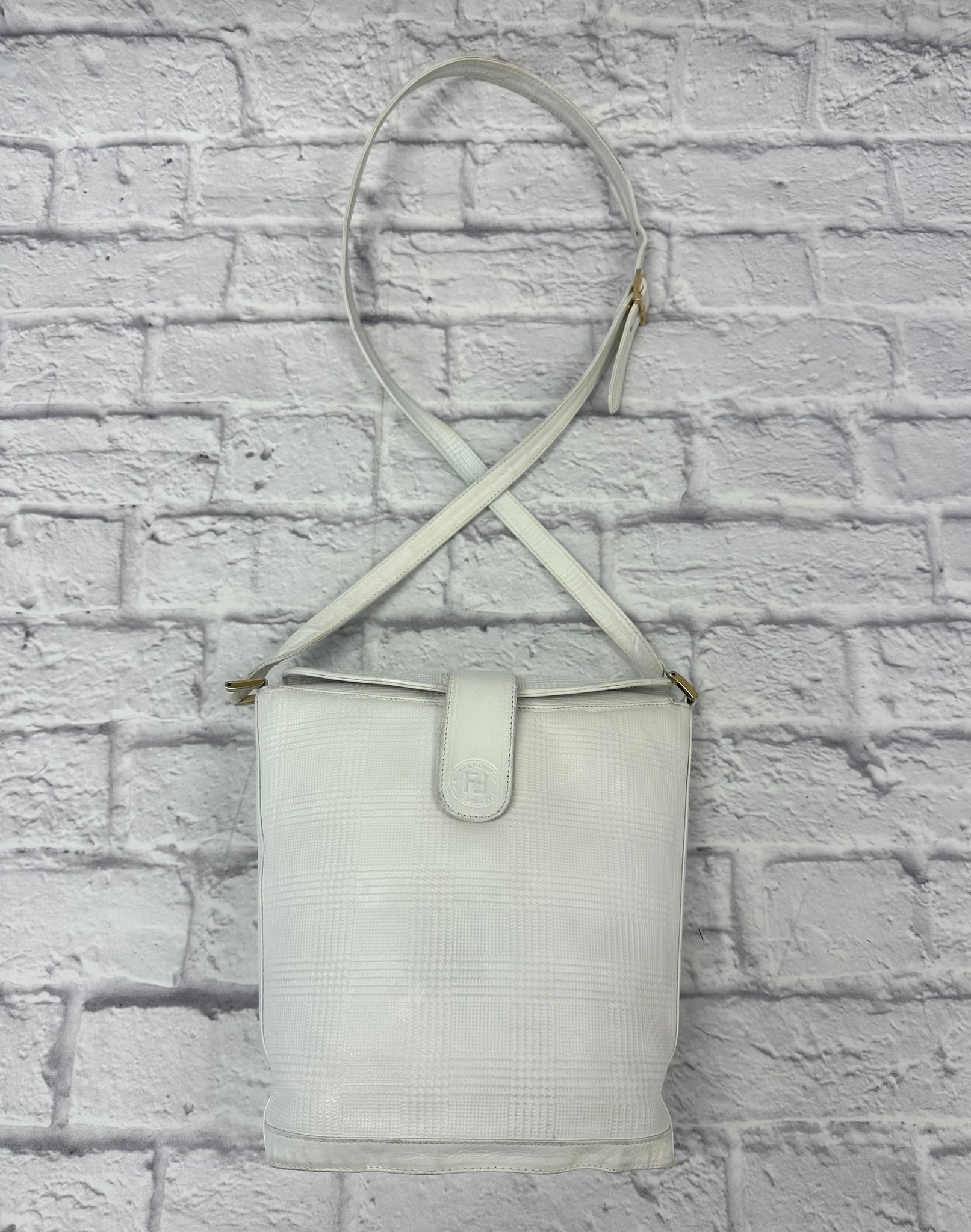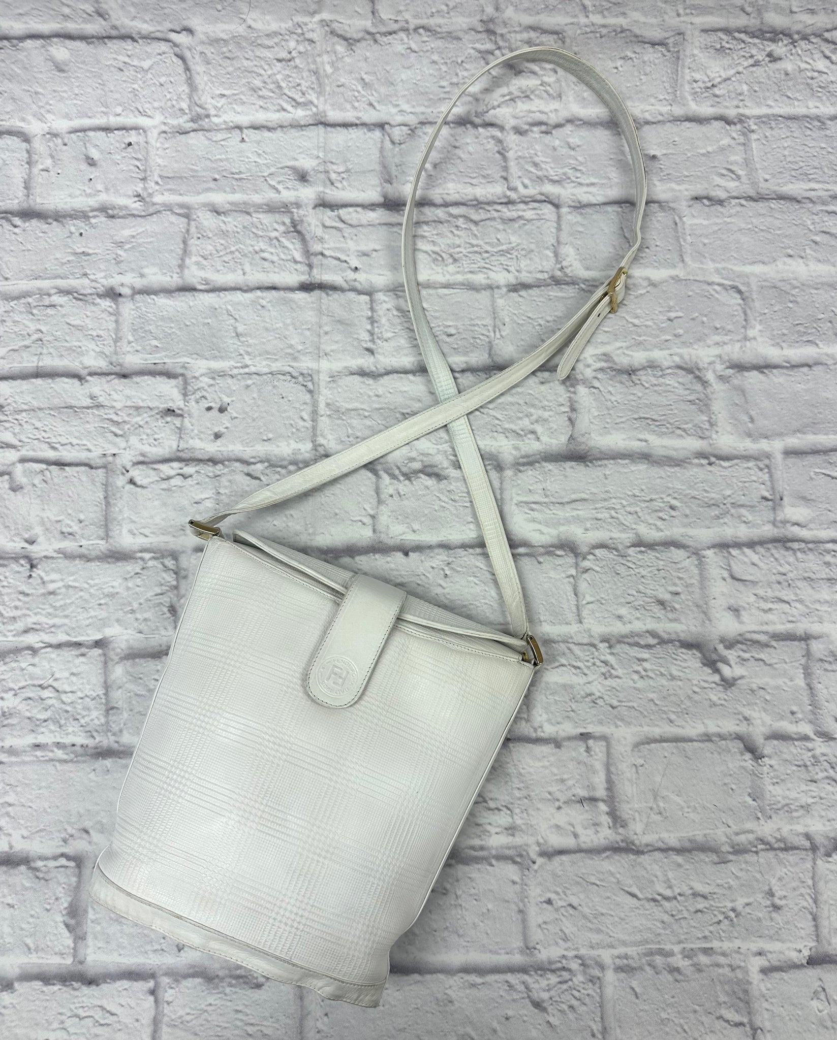 Vintage Fendi Bucket Bag, fair preloved condition. Measures approximately 7.5”L x 9.5”H x 4”D, adjustable leather strap. Comes with black satin dust bag.
